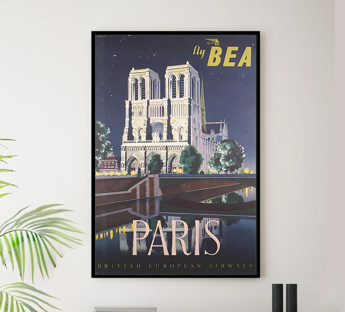 BEA Airlines - France - Paris - Vintage Travel Poster