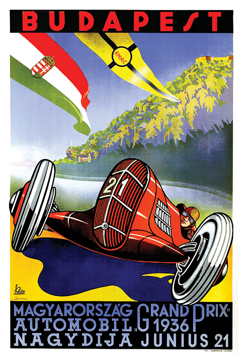 Grand Prix Budapest 1936 - Vintage Automobile Racing Poster